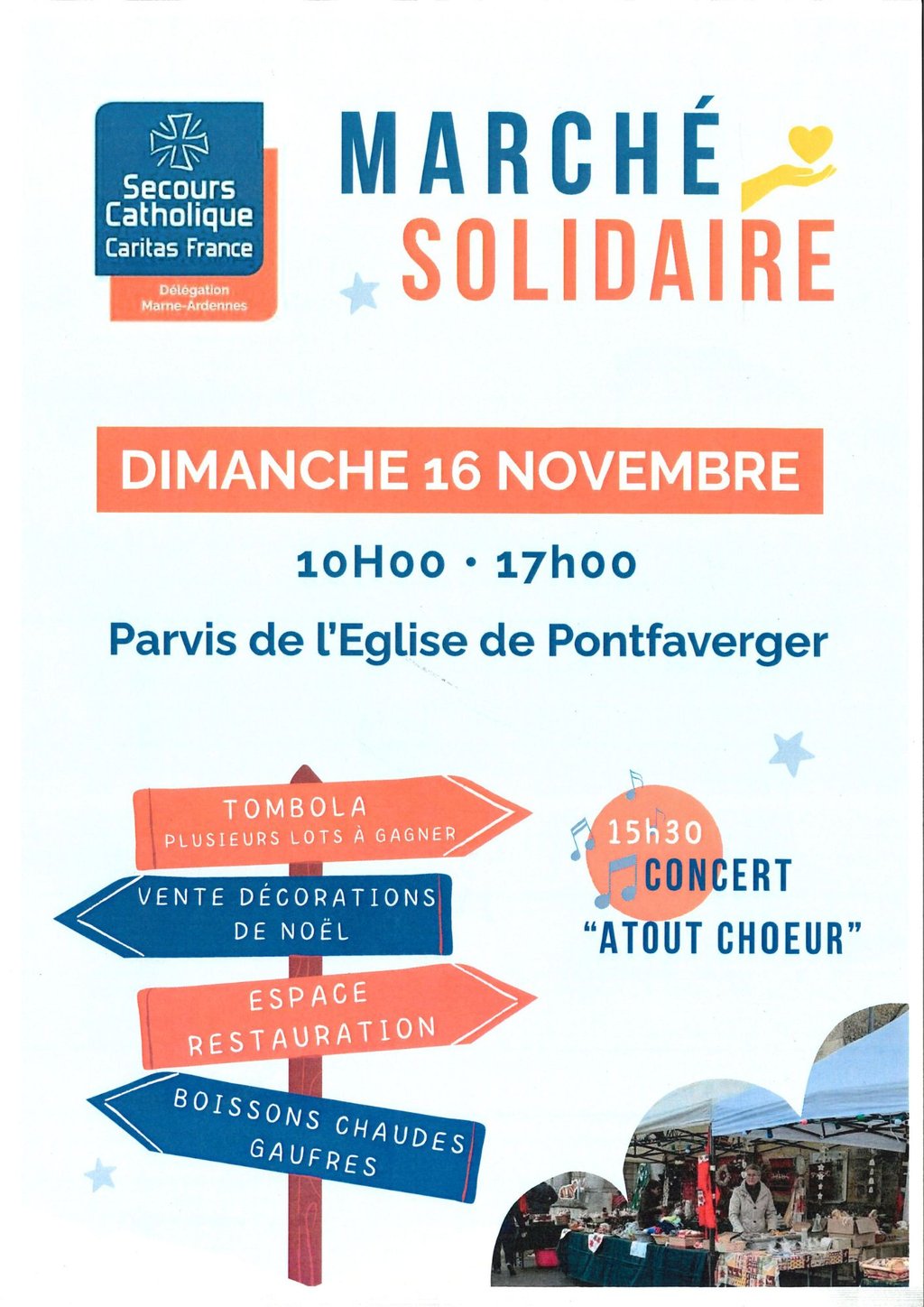 Marché Solidaire organisé par le Secours catholique le dimanche 16 novembre 2025 de 10h00 à 17h00 sur le parvis de l'église de Pontfaverger-M.