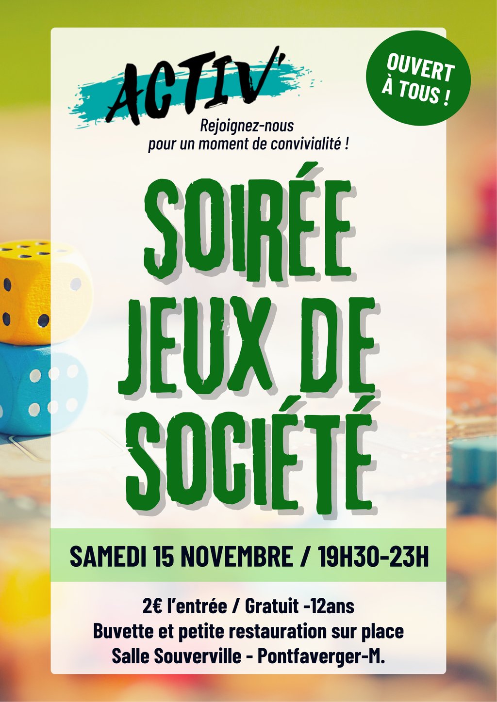 Cette année encore, notre association vous propose, une fois par mois, une soirée jeux de société.