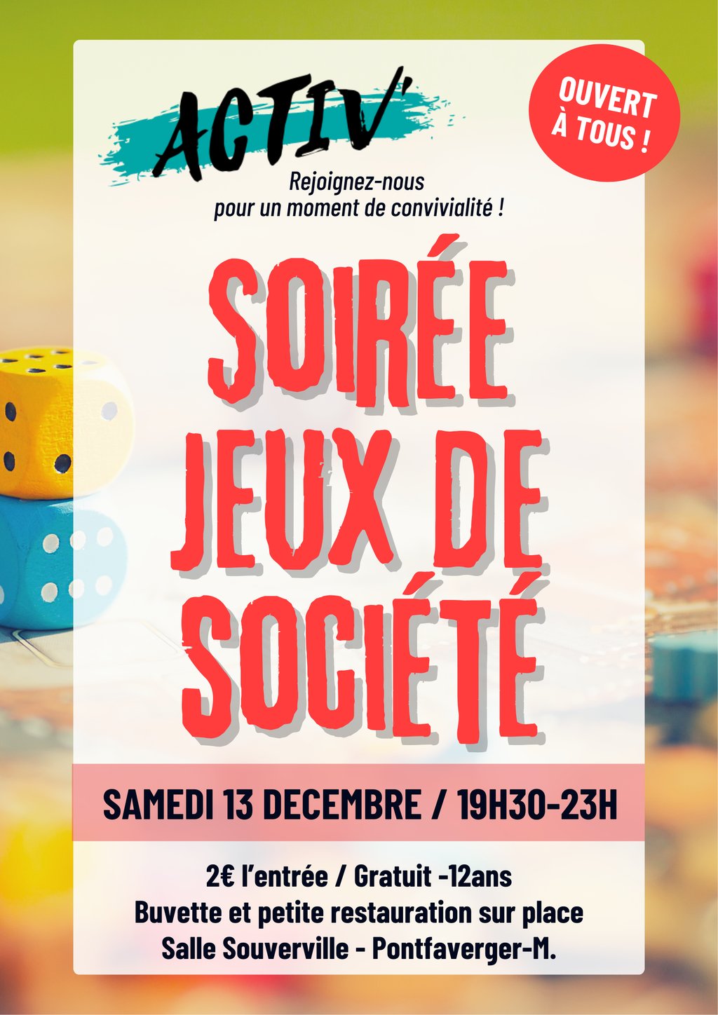 Cette année encore, notre association vous propose, une fois par mois, une soirée jeux de société.