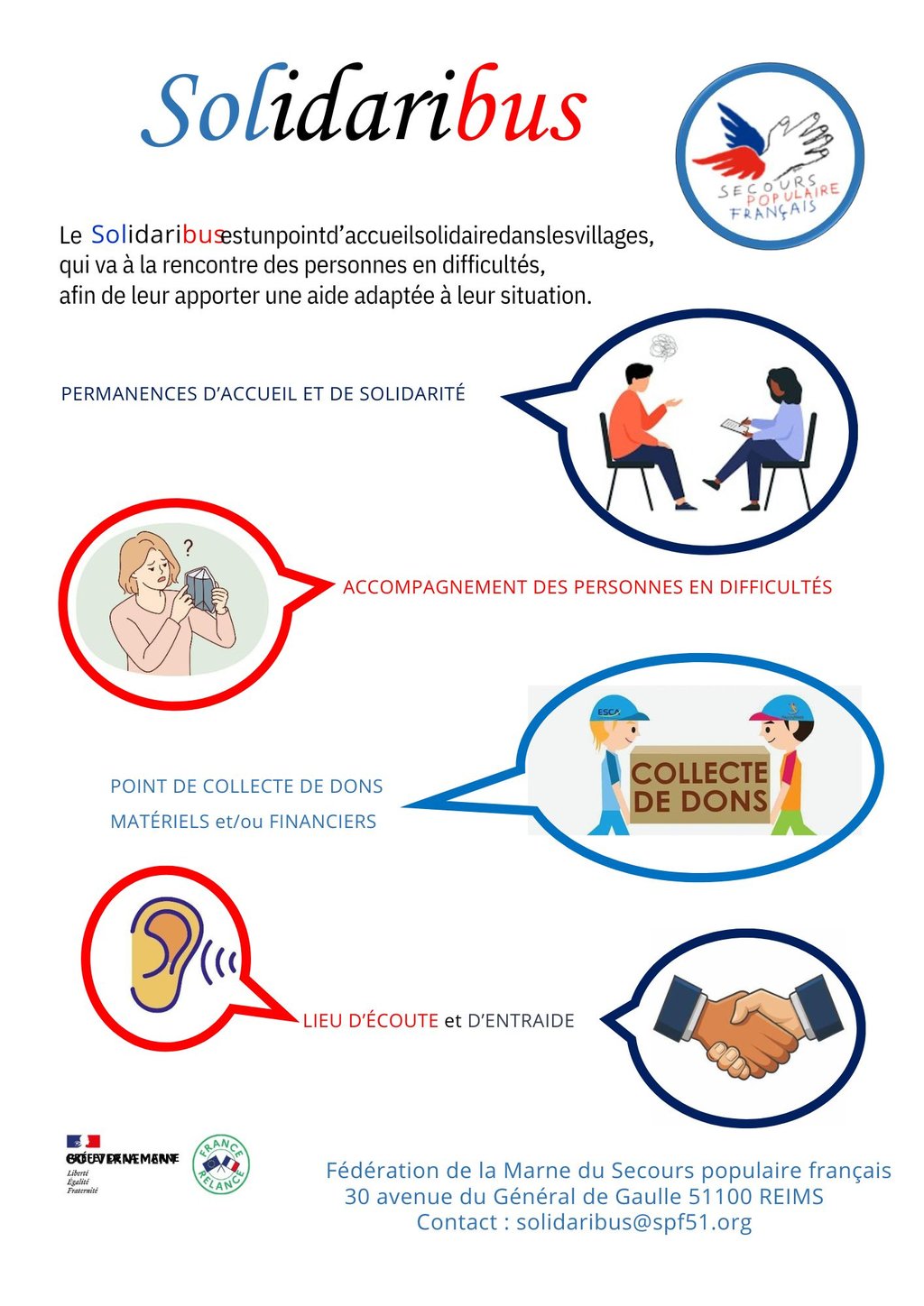 Le Solidaribus est une antenne mobile du Secours Populaire Français, une permanence d’accueil et de solidarité mobile.
